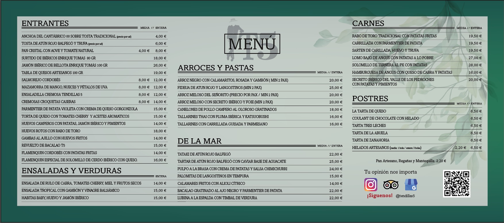 Welcome to TENDILLAS 5, Córdoba. We look forward to welcoming you. Delicious dishes of mediterranean cuisine, spanish cuisine, and european cuisine will be offered to you. Tasty dishes are prepared by the best chefs here. Bring your friends and family to enjoy tasty our food. Here you could treat yourself to our delectable ice cream, pastry, and cheesecake. We're able to cater to a multitude of dietary preferences, offering a wide array of gluten free options. Order beverages to complete your tasty meal. Enjoy meal offerings in our stylish establishment. As well as serving food, we provide nice beer garden, lounge, and music.